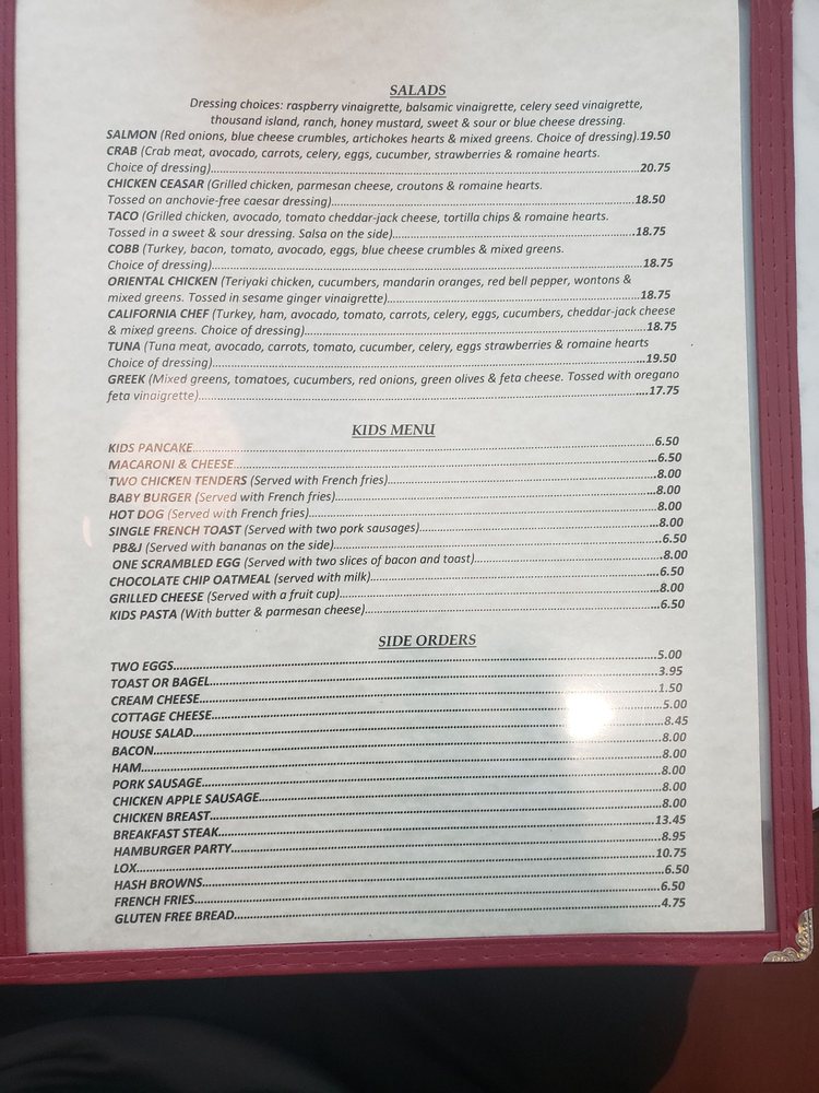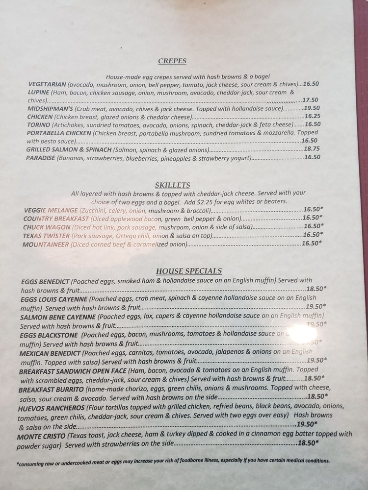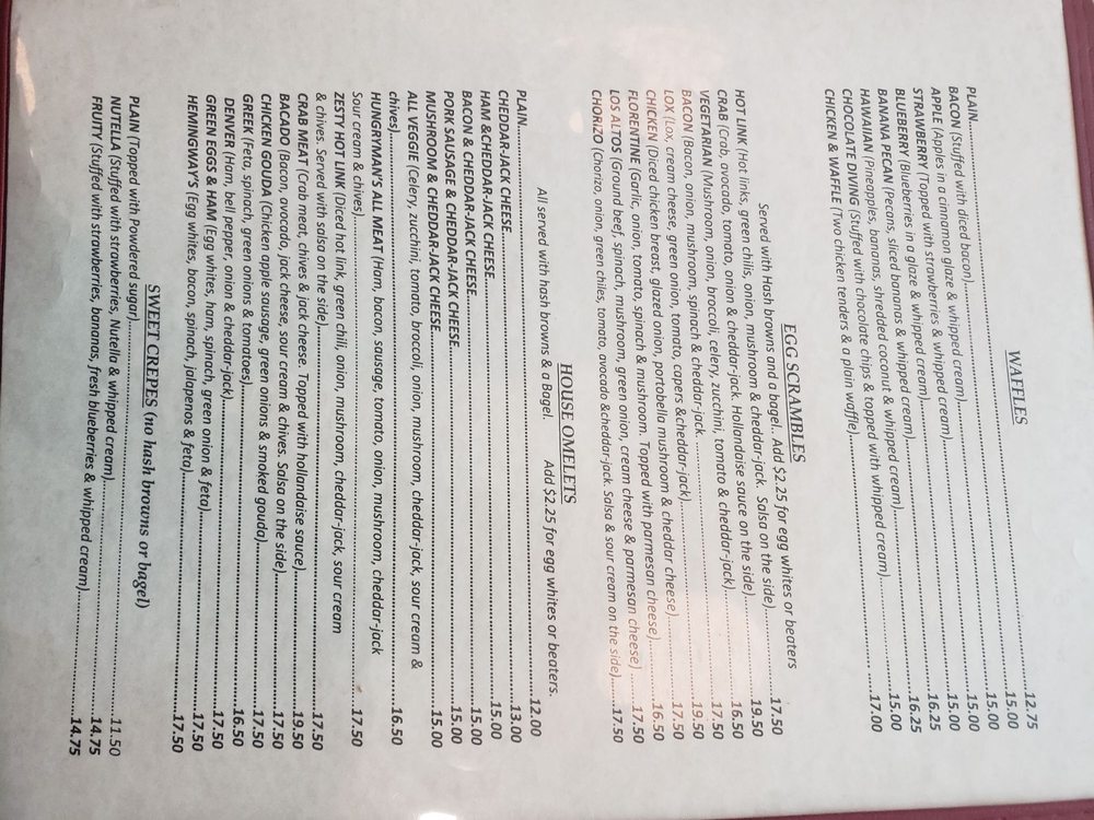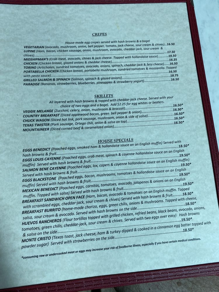 Among the culinary highlights, the Eggs Benedict Specials shine brightly, featuring variations like the Salmon Bene Cayenne and Mexican Benedict. Each dish is elegantly presented and served with crispy hash browns and fresh fruit, ensuring a delightful start to your day. The unique touch of homemade chorizo in their Breakfast Burrito adds a burst of flavor, making it a must-try. Don’t miss their signature Monte Cristo, which is decadently dipped and dusted with powdered sugar.